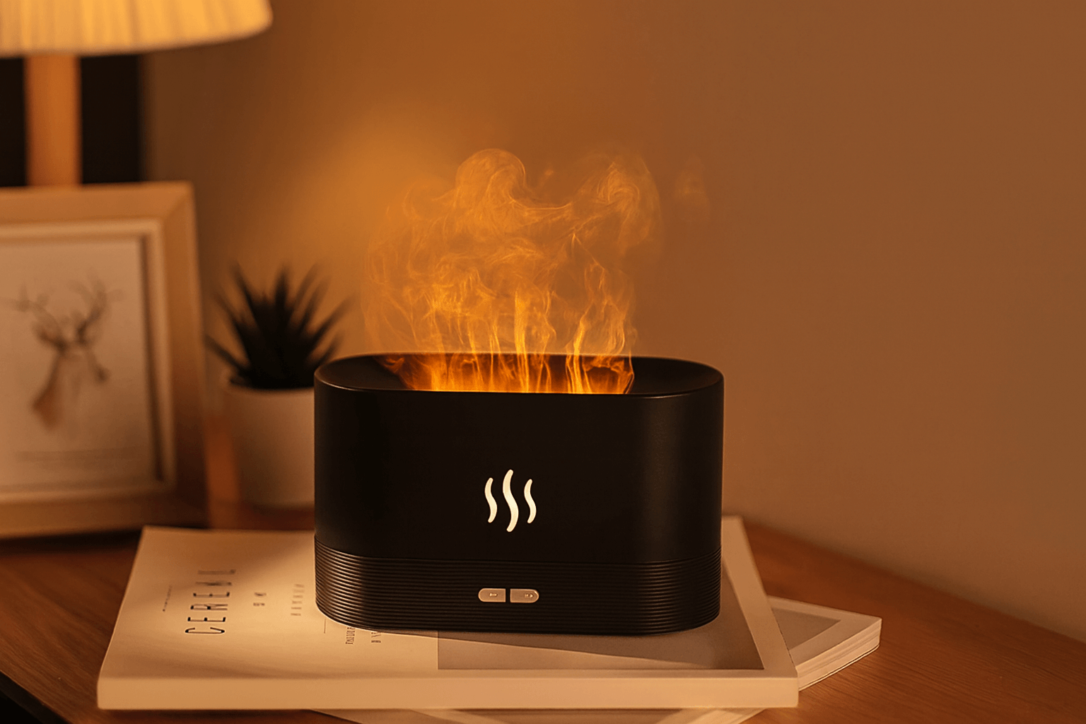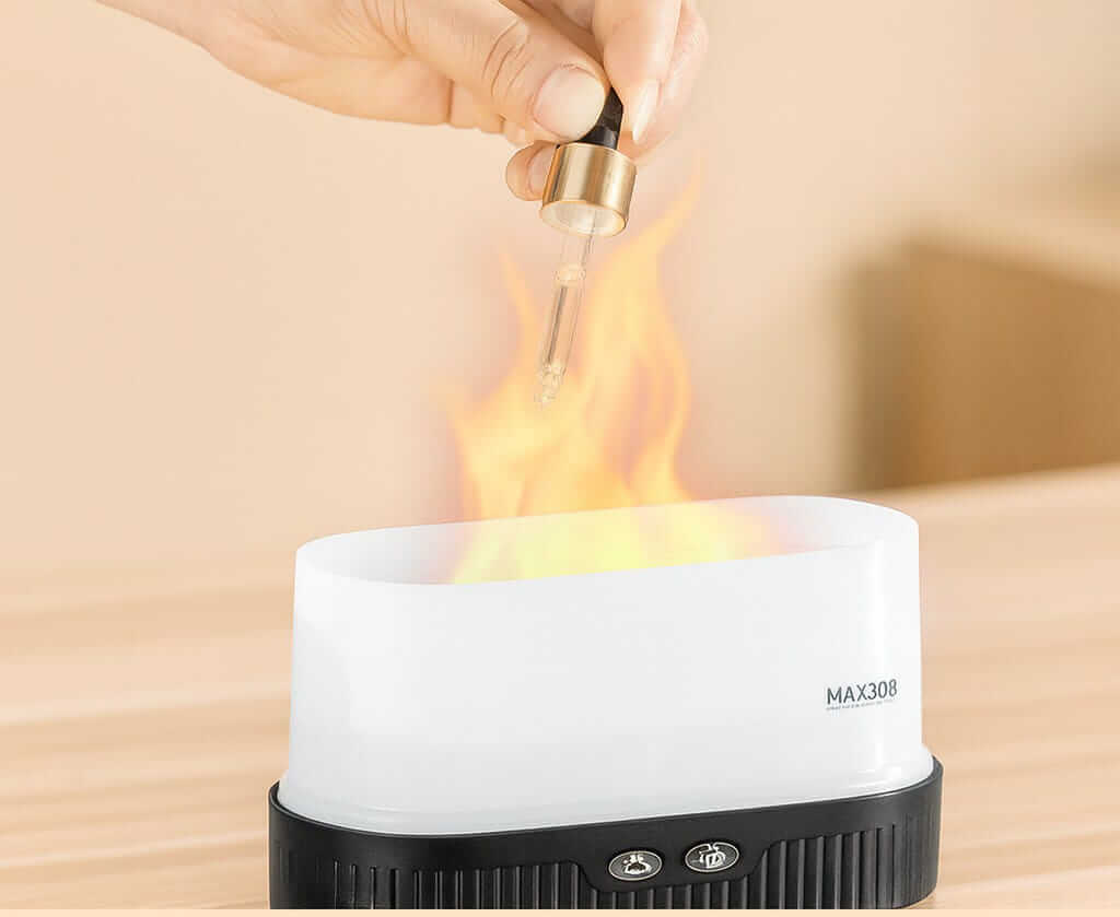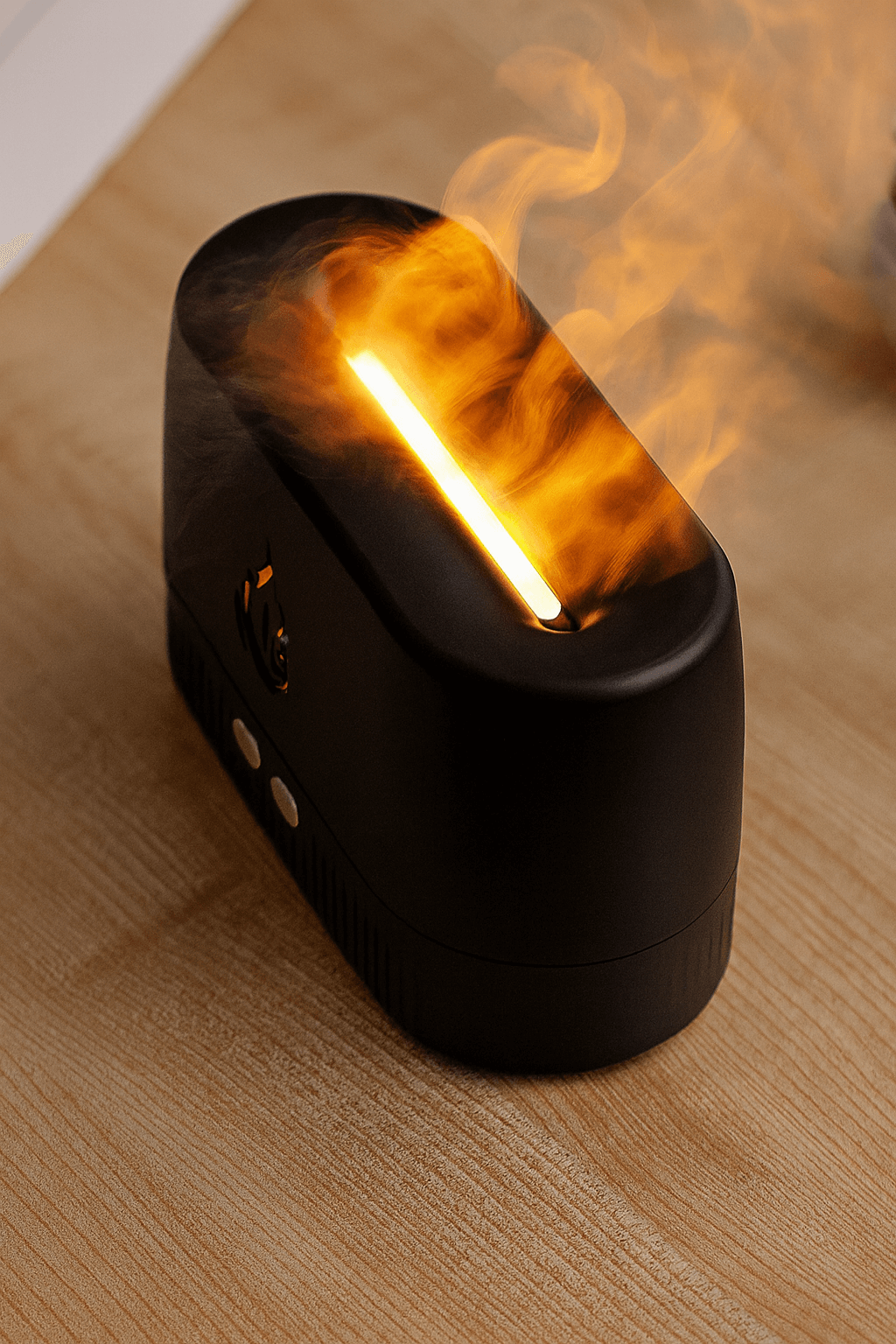 O Aromatizador Elétrico com efeito em Chamas combina Luzes LED e névoa ultrafina para criar uma Simulação Real de Fogo, lembrando o conforto de uma lareira acesa. Além de aromatizar o ambiente, ele adiciona um toque sofisticado e acolhedor à decoração, perfeito para quartos, salas ou escritórios.